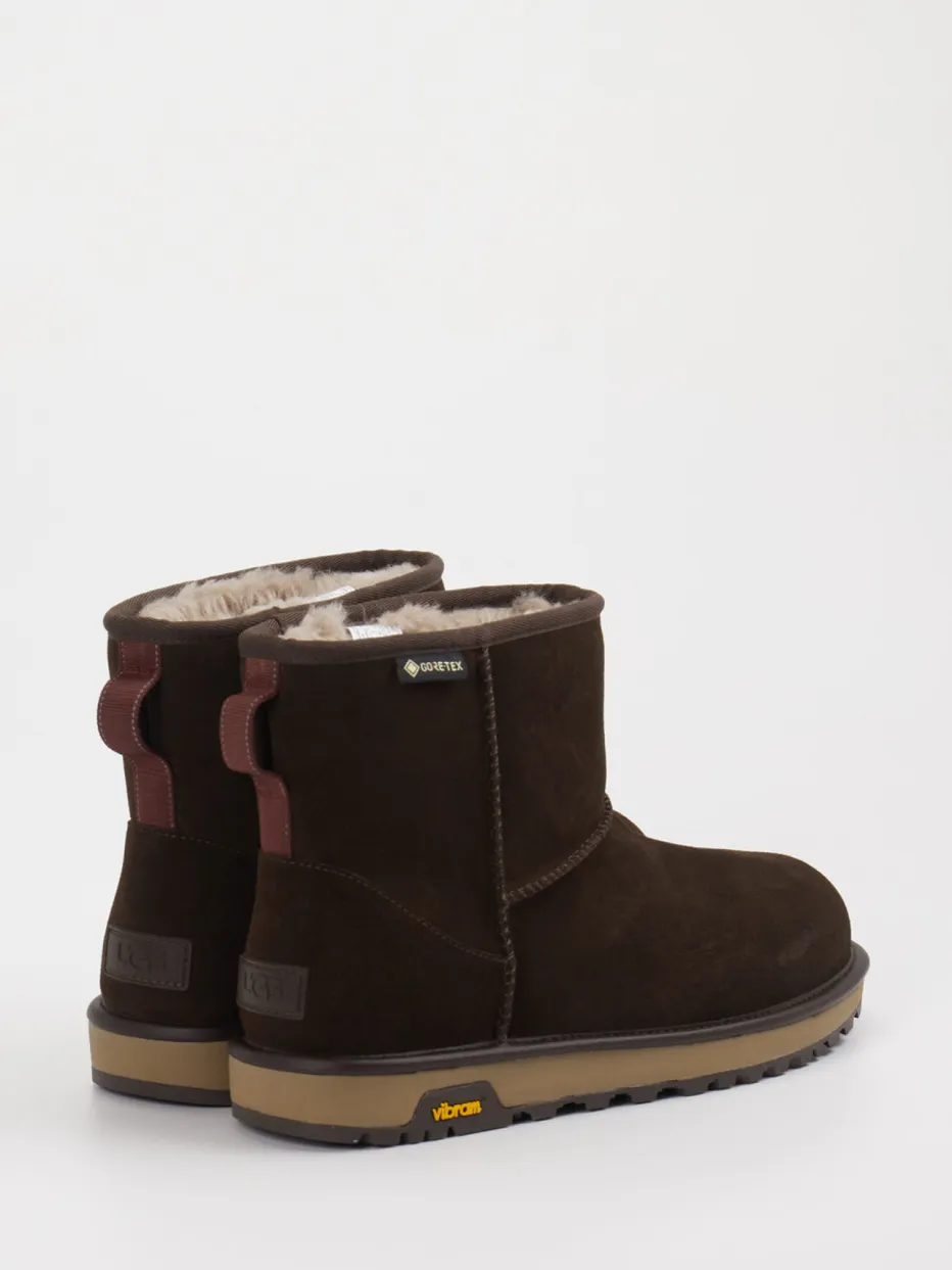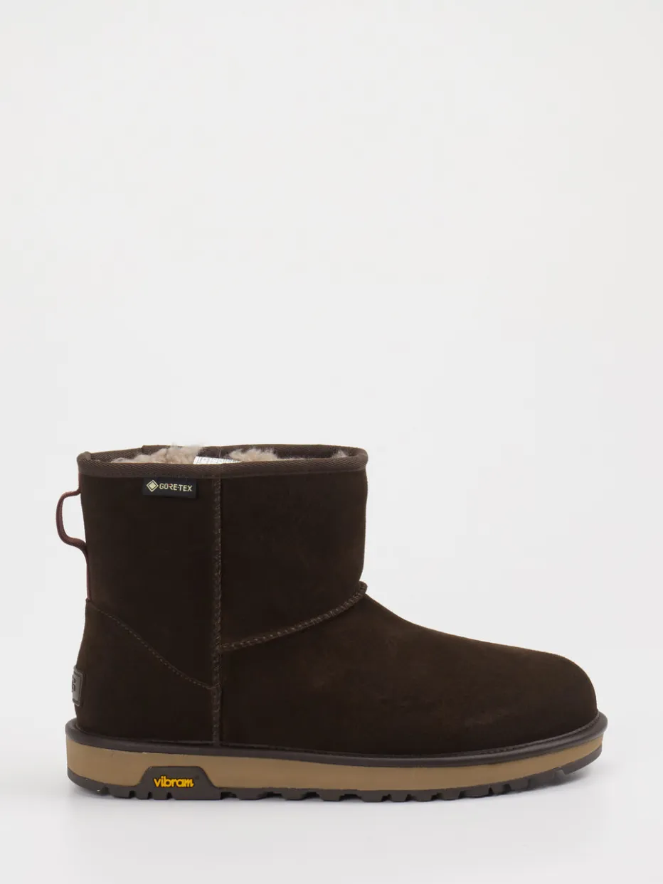 Wärme trifft Outdoor-Komfort. UGG präsentiert klassische Damen-Winter-Boots mit funktionalen Details für kalte Tage. Das braune Veloursleder mit matter Oberfläche wird durch ein kuscheliges Innenfutter ergänzt und bietet angenehme Wärme. Eine Vibram-Gummisohle sorgt für rutschfesten Halt, während die GORE-TEX®-Membran zuverlässigen Wetterschutz gewährleistet. Die runde Silhouette mit Zuglasche und Schlupfeinstieg unterstreicht den praktischen Ansatz. Ton-in-Ton-Nähte und zweifarbige Laufsohle setzen dezente Akzente und passen zur ruhig-eleganten Ästhetik von „Quiet Luxury“. Ideal zu Thermoleggings und Outdoor-Jacke kombinierbar. Ein robuster Winterbegleiter mit wetterfestem Design und markentypischem Komfort.