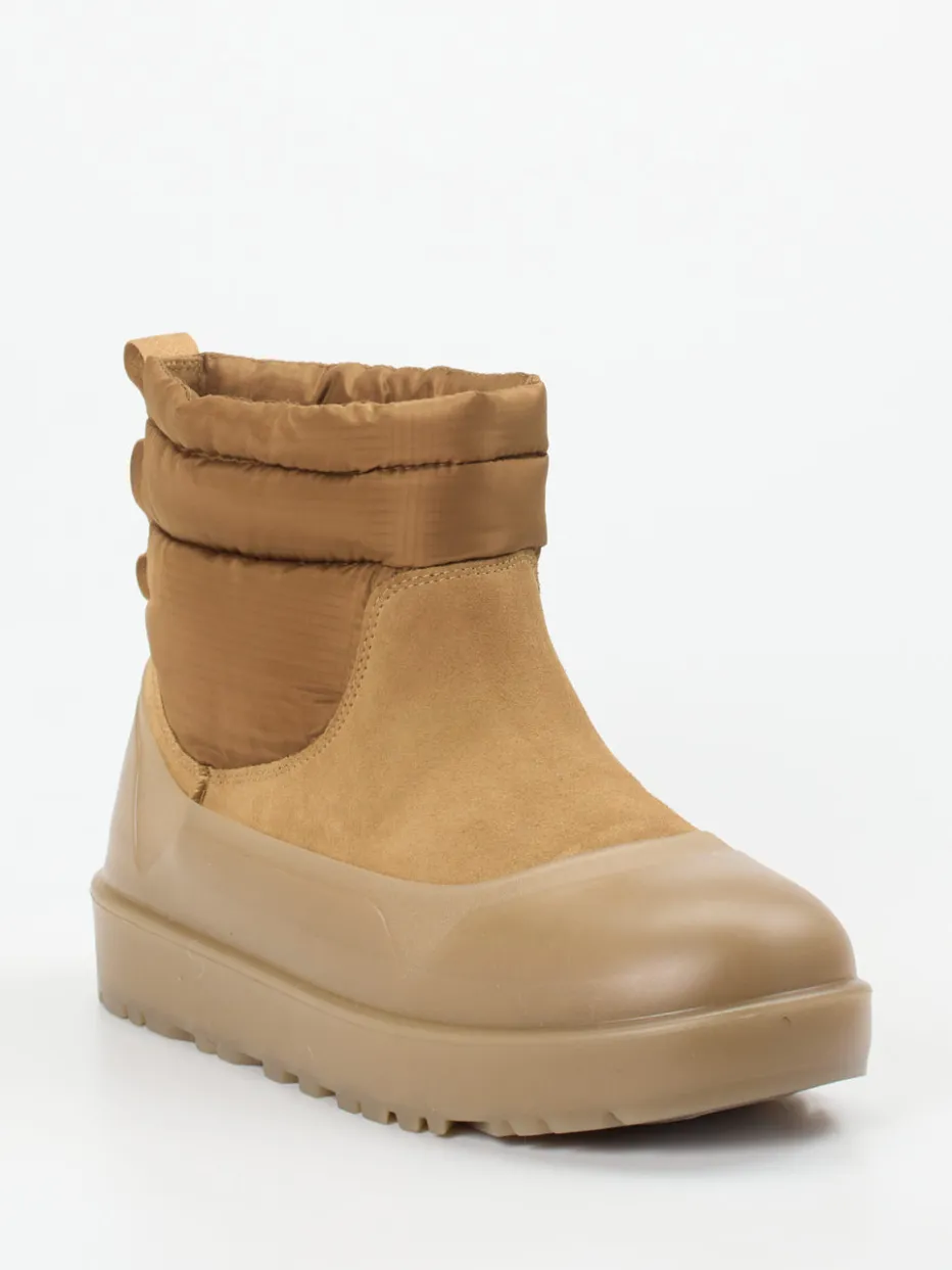Robust gerüstet für kalte Tage.UGG präsentiert stilvolle Damen-Stiefeletten für Herbst und Winter. Ideal für Spaziergänge bei Schnee und Regen: Diese voluminösen Winter-Boots überzeugen mit cognacfarbenem Nylon-Schaft, samtig angeschliffenem Veloursleder und einer tief profilierten Gummisohle mit starkem Grip. Der Einstieg gelingt dank Schlupfform und Zuglasche mühelos. Innen sorgt flauschige Textilfaser für angenehme Wärme. Das minimalistische Ton-in-Ton-Design mit texturiertem Schaft passt perfekt zum aktuellen Puffer-Look und ergänzt Utility-inspirierte Outfits. Besonders harmonisch zu Thermo-Leggings und weitem Mantel. UGG kombiniert Funktion, Komfort und modisches Bewusstsein für anspruchsvolle Winterlooks.