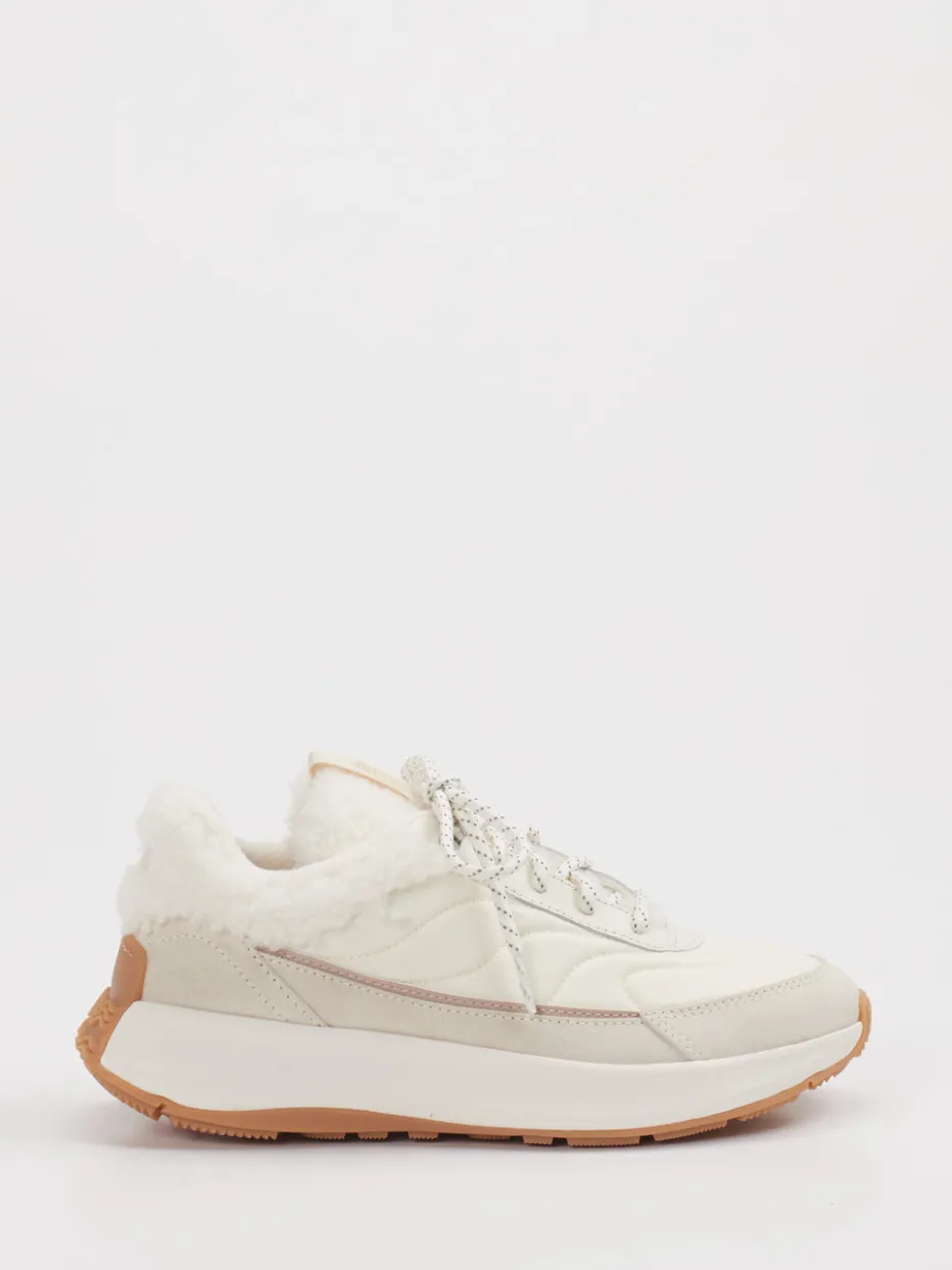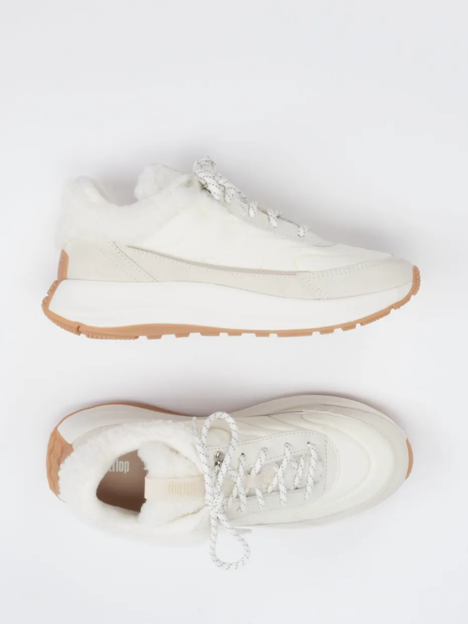 Stylischer Komfort für kühle Tage. FitFlop präsentiert einen bequemen Sneaker für Damen, der auch in der kalten Jahreszeit überzeugt. Die Kombination aus Velours und Textil mit matter Oberfläche trifft auf cremige Beigetöne und helle Braunakzente. Der klassische, rund geschnittene Schuh ist mit warmem Textilfutter ausgestattet und bietet durch seine profilierte Gummisohle Trittsicherheit. Reflektierende Schnürsenkel und ein gepolsterter Schaft unterstreichen den Retro-inspirierten Chunky-Charakter. Die stilistische Nähe zu Streetwear passt ideal zu entspannten City-Stylings – etwa mit Steppjacke und Strickmütze. Wärmender Style mit funktionalem Komfort – typisch FitFlop.