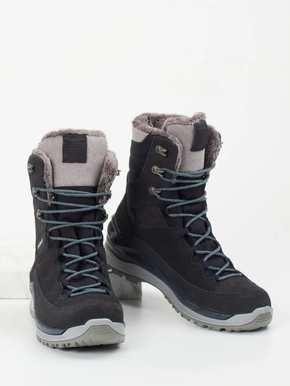 Der hoch geschnittene Outdoor-Stiefel von Lowa verbindet winterfeste Funktionalität mit robustem Veloursleder und wasserdichter GORE-TEX-Membran – ideal für anspruchsvolle Wanderungen bei Kälte.