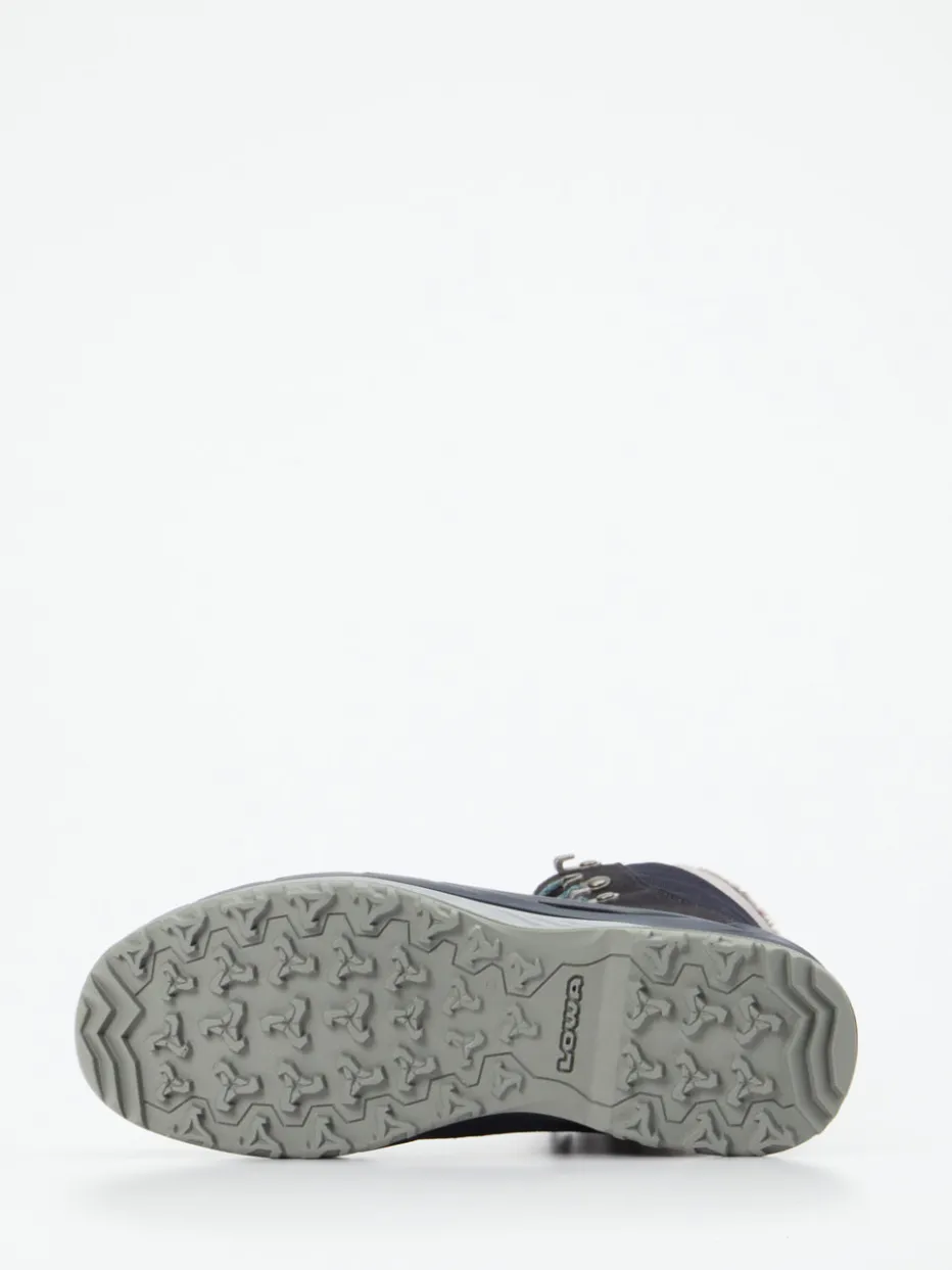 Outdoor-Komfort für eisige Tage.Lowa präsentiert mit diesem Winter-Wanderstiefel eine verlässliche Begleitung für kalte Outdoor-Abenteuer. Robustes Veloursleder mit matter Oberfläche trifft auf wärmendes Kunstfellfutter – kombiniert mit funktionalem Textil und einer griffigen Gummisohle. Die dominante dunkelblaue Farbgebung mit anthrazitfarbenen Details, farblich abgesetzte Schnürsenkel und ein hoch geschnittener Schaft sorgen für einen sportiv-markanten Look. Die GORE-TEX-Membran schützt zuverlässig vor Wind und Nässe, während die ausgeprägte Profilsohle optimalen Halt auf winterlichen Böden bietet. Perfekt für Wanderwege, den Alltag und kombinierbar mit Softshellhose und Funktionsjacke. Langlebigkeit, Traktion und Komfort machen diesen Stiefel zur funktionalen Stilwahl im Winter.