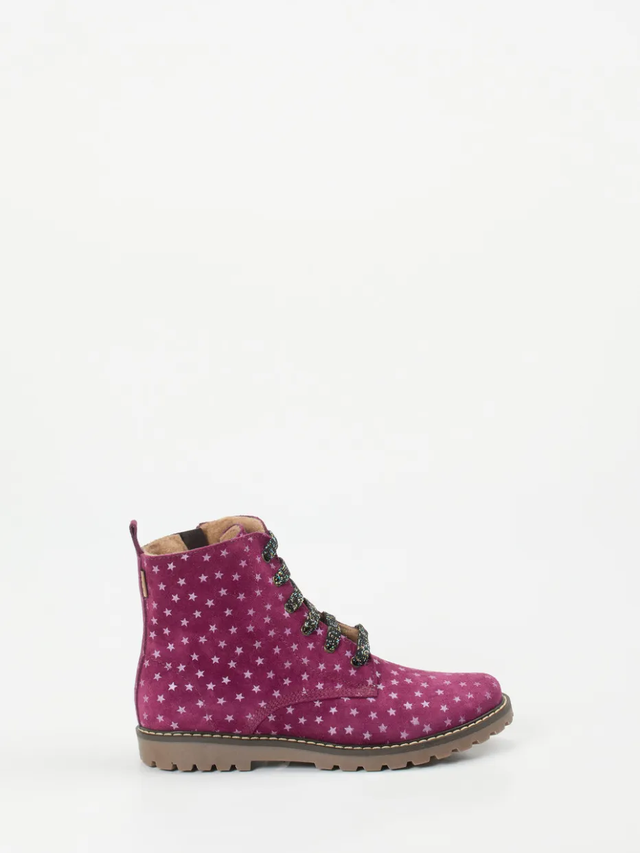 Der beerenpinke Schnürboot vereint kindgerechten Komfort mit ausdrucksstarkem Design. Glitzerschnürung, Sternmuster und robuste Gummisohle setzen winterliche Akzente.