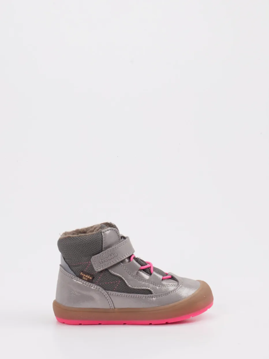 Für kleine Schritte im großen Winter.Froddo präsentiert funktionale Kinder-Winterboots mit durchdachter Ausstattung für kalte Tage. Wenn Spielplatz, Kita oder Spaziergang auch bei Frost nicht ausfallen sollen, bietet dieses Modell idealen Schutz. Gefertigt aus samtig angerautem Veloursleder und ergänzt durch glänzende Partien, begeistert die graue Stiefelette mit pinken Highlights wie Elastiksenkel, Kontrastnähten und farbiger Laufsohle. Das Innenfutter aus warmer Wolle sorgt für Temperaturkomfort, während Klettverschluss und flexible Gummisohle praxisgerecht und rutschfest sind. Die knöchelhohe Form unterstützt optimal beim Laufenlernen. Stylisch zu Thermohose oder Outdoorjacke. Kindgerecht konstruiert mit komfortorientierter Froddo-typischer Qualität.