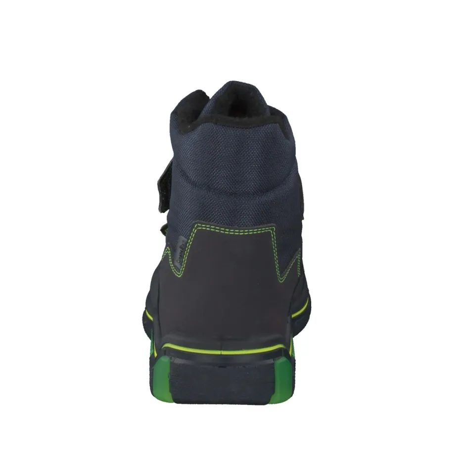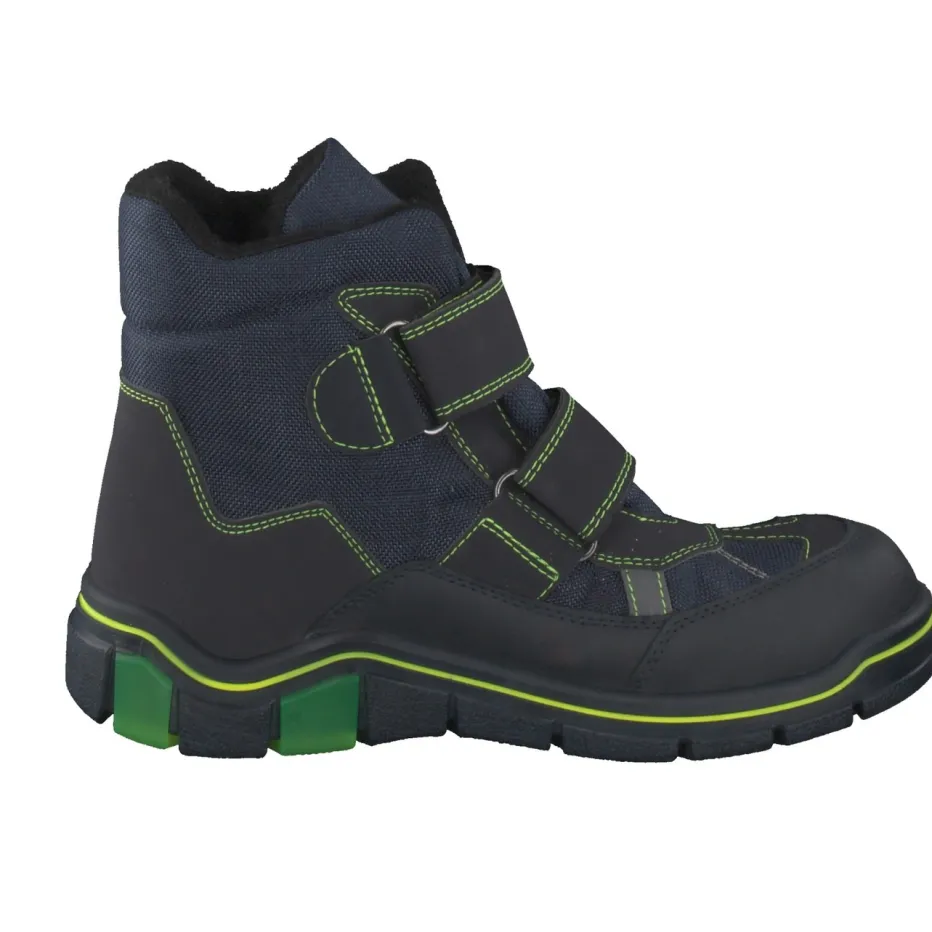 Für kleine Outdoor-Fans gemacht.Ricosta präsentiert mit diesen Kinder-Winterstiefeln ein funktionales Modell für kalte Tage. Dank wärmendem Fleece-Futter, ergonomischem Schnitt und robustem Synthetikmaterial mit matter Oberfläche bleiben Kinderfüße komfortabel und gut geschützt. Das dunkelblaue Design mit neongrünen Kontrastnähten und reflektierenden Details passt ideal zur aktiven Streetwear-Ästhetik. Klettverschlüsse ermöglichen unkompliziertes An- und Ausziehen, während die profilierte PU-Sohle mit neongrünem Rand Rutschfestigkeit auf winterlichen Untergründen bietet. Ideal für Alltag und Outdoor-Abenteuer. Solide Kinderqualität mit funktionaler Ausstattung – typisch Ricosta.