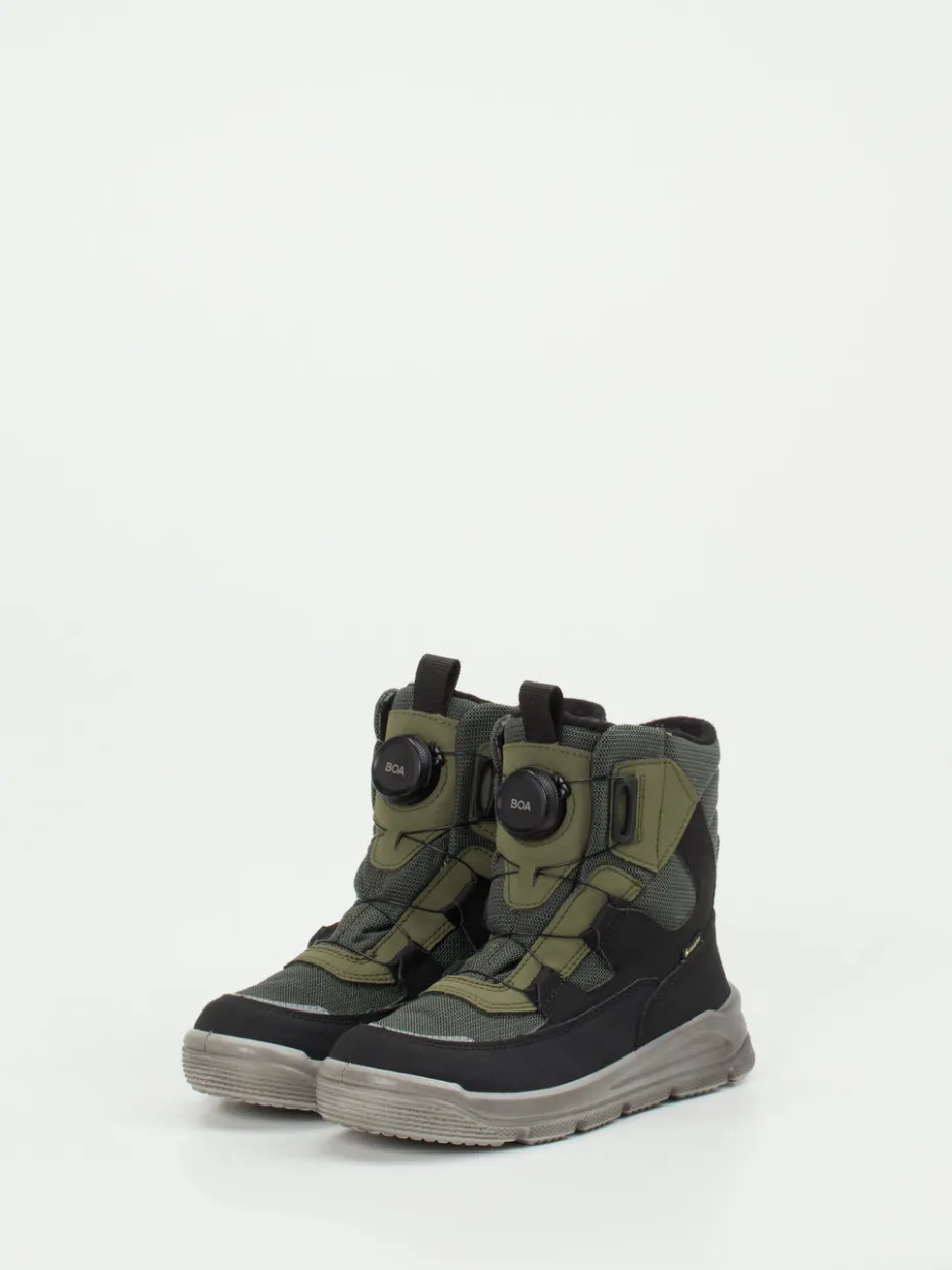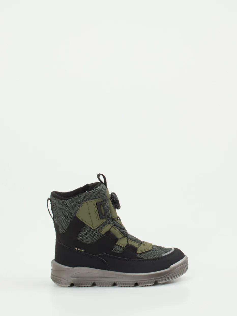 Outdoor-Komfort für kalte Tage.Superfit präsentiert mit diesem Winterstiefel einen funktionalen Kinderboot für Herbst und Winter. An kalten, feuchten Tagen bietet der hoch geschnittene Stiefel mit seiner wasserfesten GORE-TEX-Membran zuverlässigen Schutz. Das strukturierte Synthetikmaterial in Olivgrün und Schwarz ist strapazierfähig und ergänzt die Mesh-Einsätze optisch wie funktional. Praktisch: Der BOA-Drehverschluss erleichtert das eigenständige An- und Ausziehen. Eine verstärkte Zehenkappe und reflektierende Details sorgen für Sicherheit bei Aktivitäten im Freien. Die griffige PU-Profilsohle garantiert bei Matsch oder Schnee optimalen Halt. Raffinierte Utility-Akzente bringen Streetwear-Flair in den Kinderalltag. Technik, Komfort und Stil für aktive Entdecker, wie man es von Superfit erwartet.