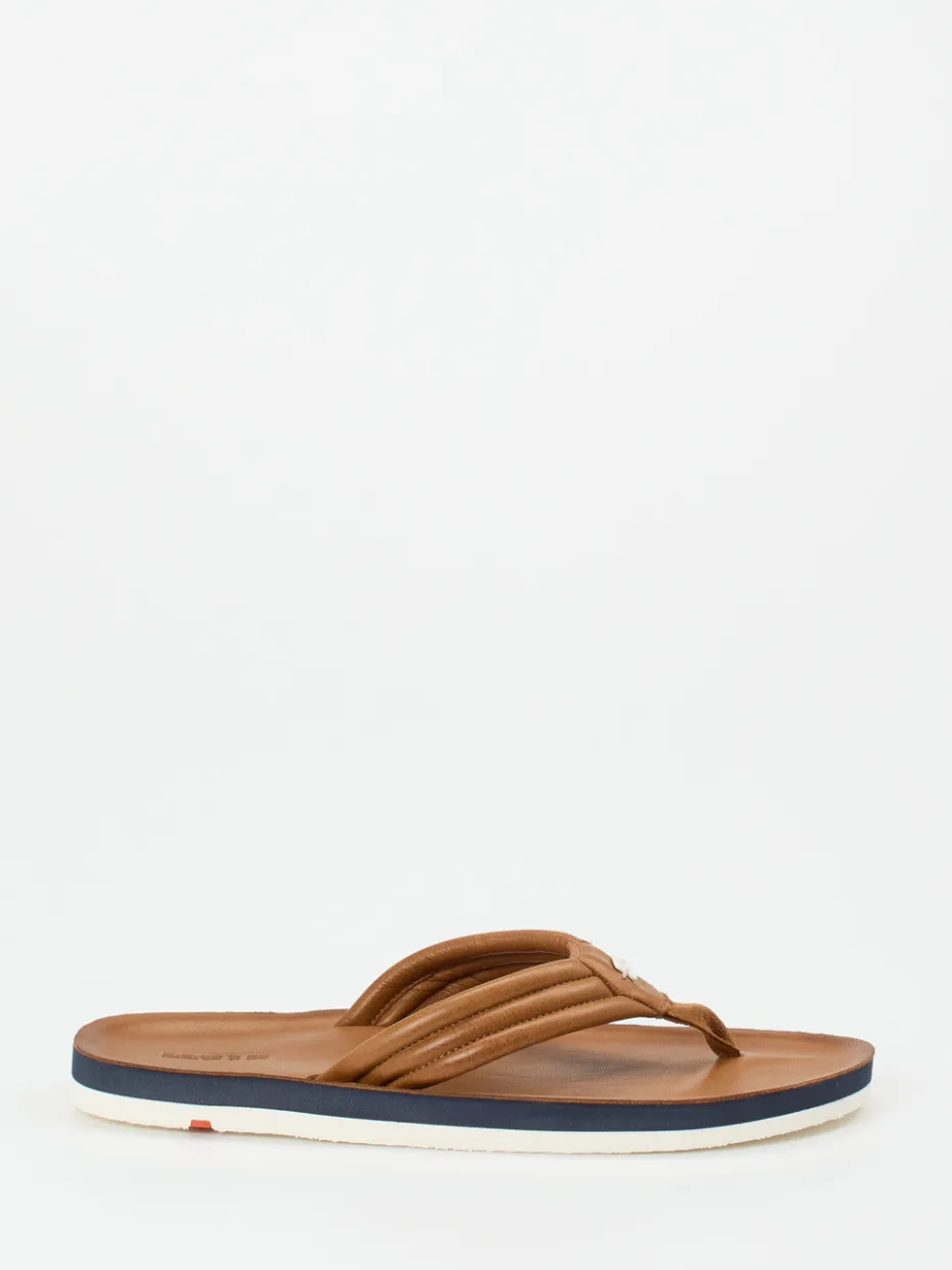 Sommerkomfort mit Stil.Der Zehentrenner von Lloyd präsentiert sich als hochwertiger Freizeitschuh für Herren. Angenehm leichte Sommeraktivitäten verlangen nach Komfort – dieser Zehentrenner bietet genau das. Weiches Kalbleder in cognacbrauner Optik formt die gepolsterten Riemen sowie das innenliegende Lederfußbett. Eine flache Silhouette, kombiniert mit einer flexiblen, weiß-navyfarbenen Gummisohle und rotem Akzent, unterstützt entspanntes Gehen mit Grip. Der Verzicht auf Verschlüsse unterstreicht das minimalistische Design mit „Quiet Luxury“-Charakter. Ein vielseitiger Begleiter – ideal zu Leinen-Shorts und Canvas-Tasche. Reduziertes Design auf hohem Komfortniveau – markentypisch Lloyd.