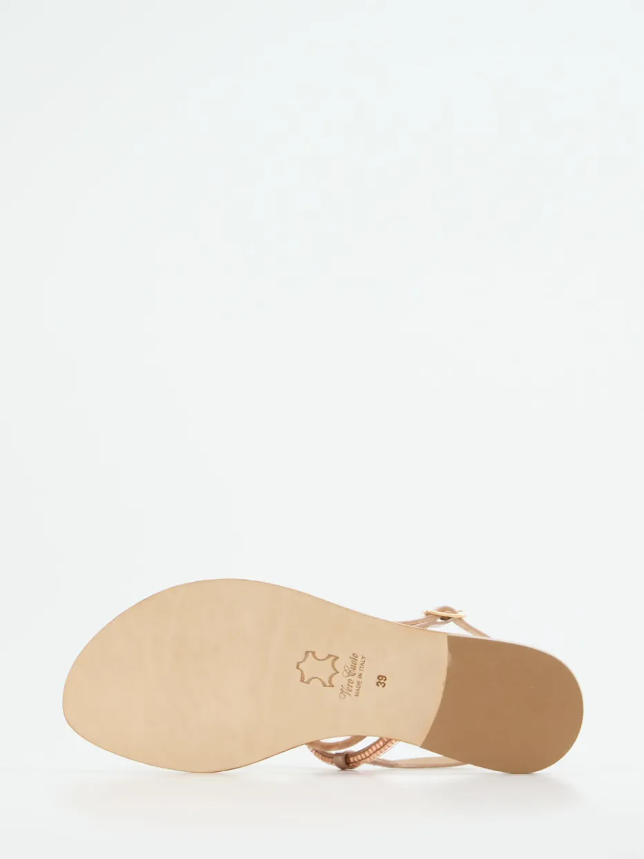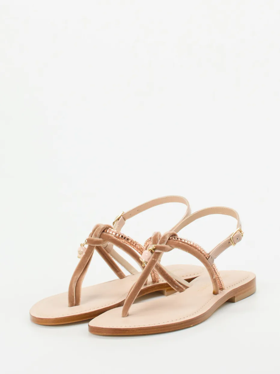 Femininer Sommerbegleiter mit Boho-Flair.Die Zehentrenner-Sandale von Konstantin Starke kombiniert Komfort und Eleganz für warme Tage. Sanft roséfarbenes Textil wird mit tonigem, glatt anmutendem Kalbleder kombiniert und durch eine goldfarbene Schnalle sowie ein herzförmiges Schmuckelement mit Pling-Klang akzentuiert. Die flache Silhouette, ein feines Zehenband und der individuell regulierbare Fersenriemen machen sie alltagstauglich. Eleganter Minimalismus trifft auf verspielte Boho-Details – passend zum Stylingtrend Subtle Glam. Ideal zu luftigen Kleidern in Pastelltönen und Basttasche kombinierbar. Sommerliche Leichtigkeit mit hochwertiger Verarbeitung in markentypischem Stil.