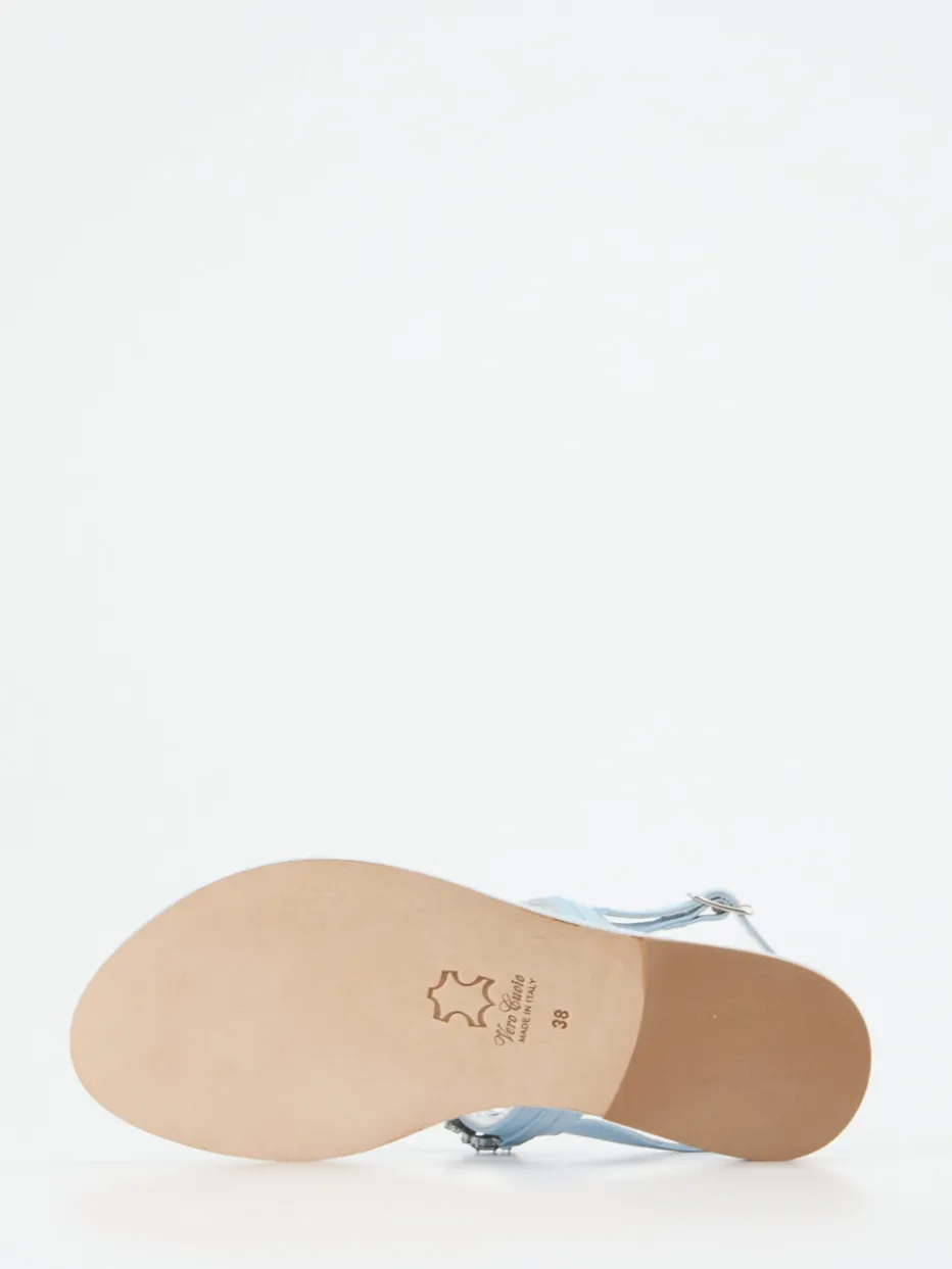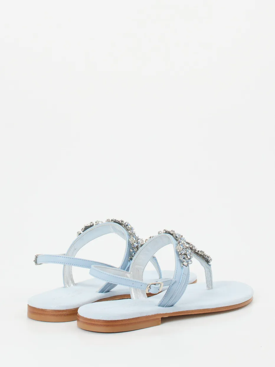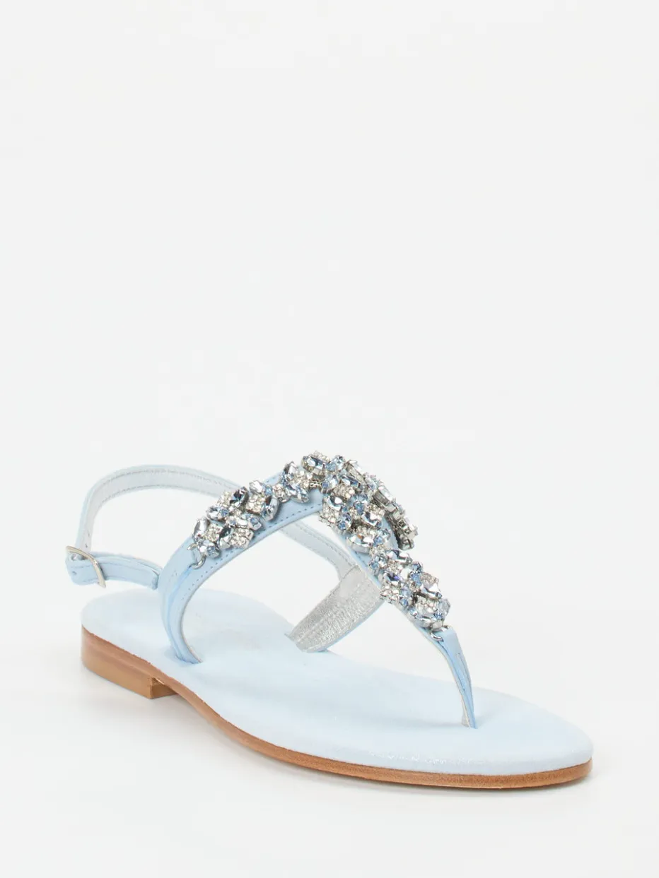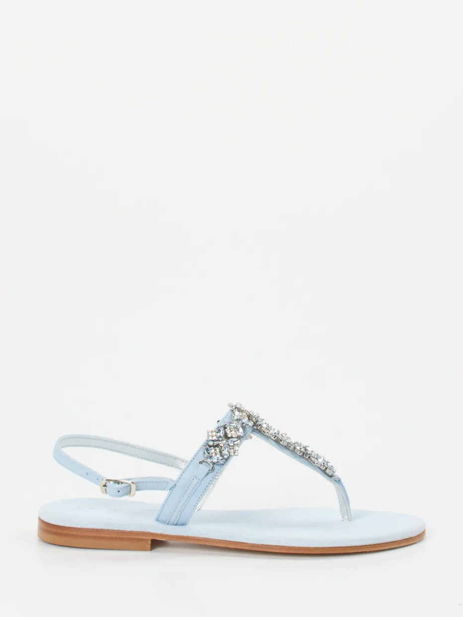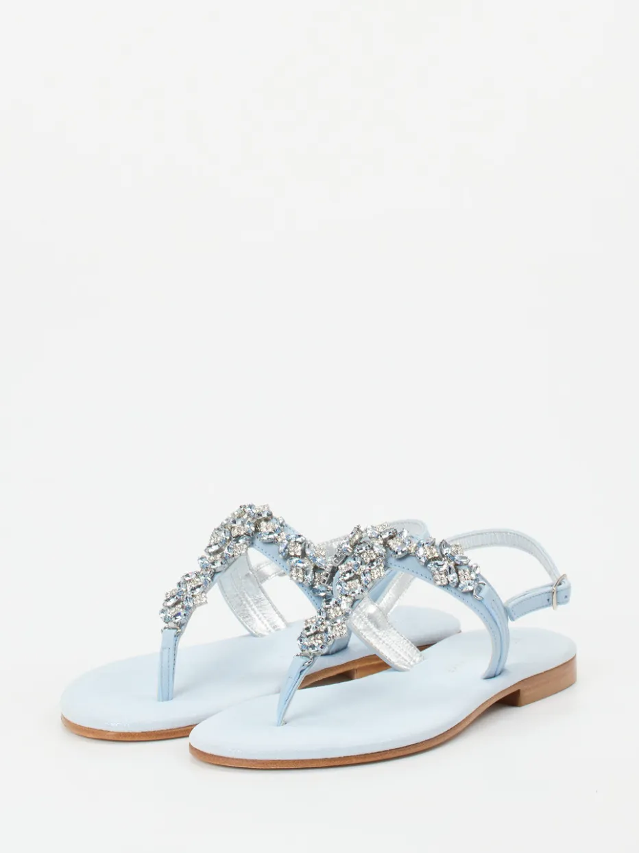 Filigrane Kristallverzierungen und glänzendes Metallicleder verleihen dieser Zehentrenner-Sandale eine elegante Leichtigkeit – ideal für festliche Sommermomente.